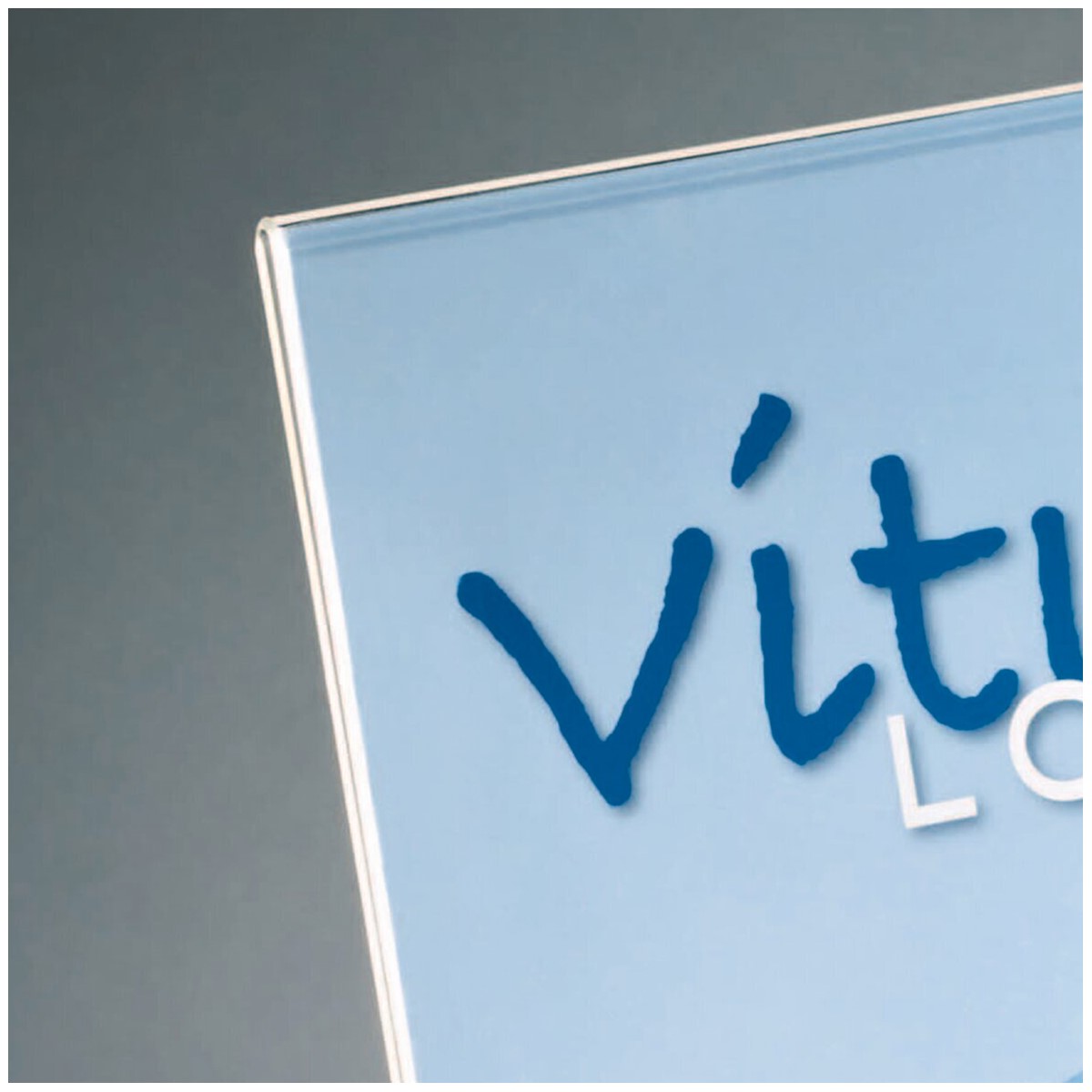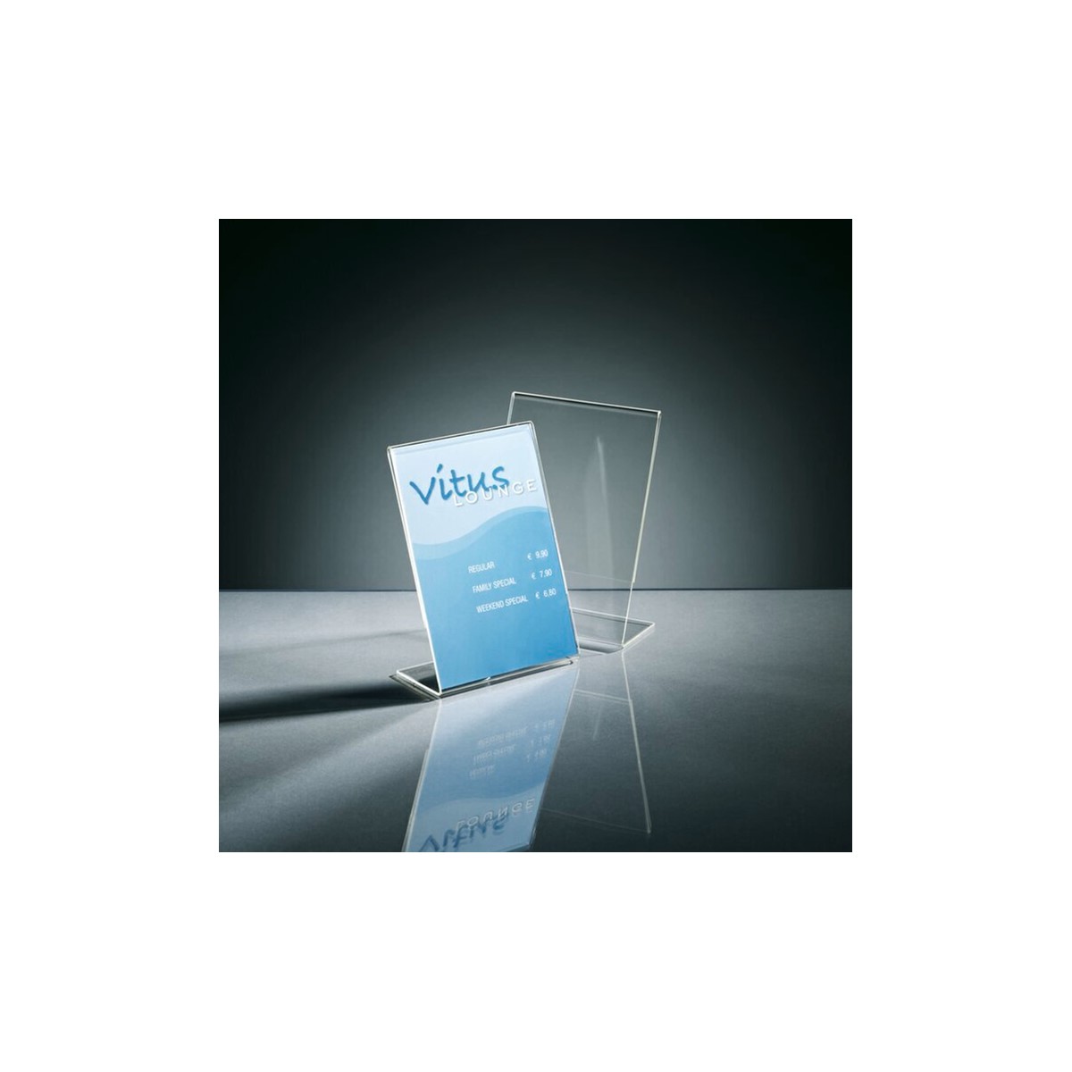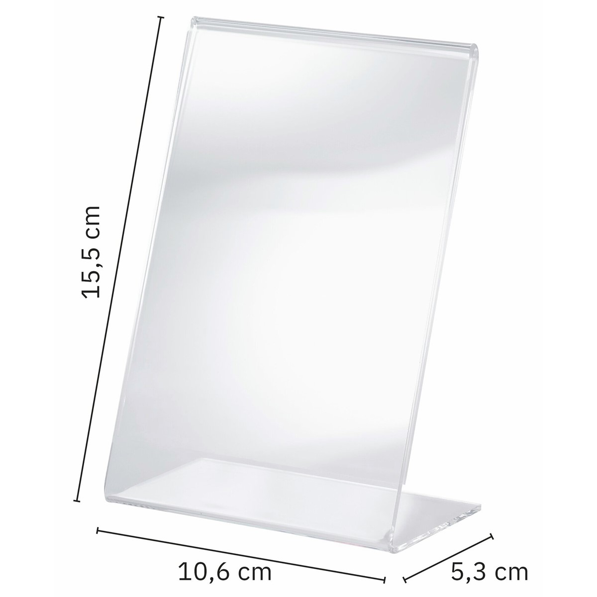 Tischaufsteller, schräg, einseitige Präsentation, passend für das Format 105 x 148 mm, Acryl (PMMA), glasklar.