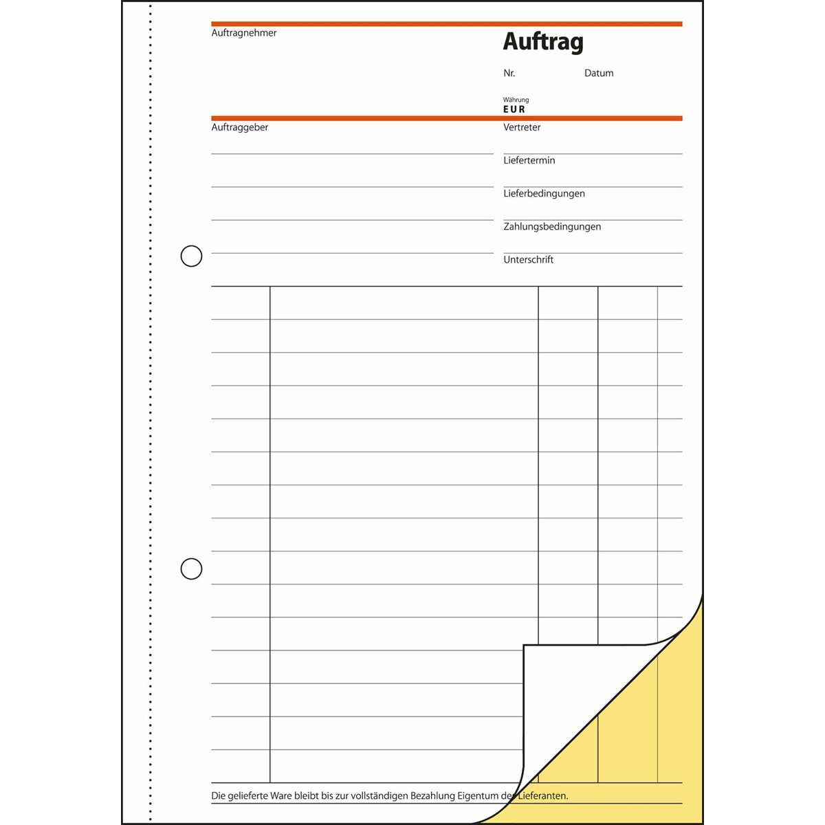 Selbstdurchschreibendes Auftragsformular mit farbiger Kopie (gelb), Format A5, in praxisorientierter, übersichtlicher Gestaltung.