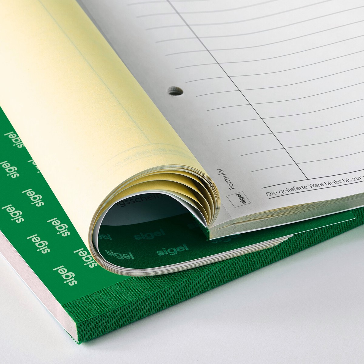 Selbstdurchschreibendes Auftragsformularbuch im Format DIN A5 mit 40 Originalen + 40 gelben Kopien, inklusive integrierter Schreibunterlage. FSC® zertifiziert, aktuell und rechtssicher. Alle Blätter haben eine Abheftlochung und eine ultrafeiner Microperforation für ein schnelles und sauberes Heraustrennen. Eine Sicherheitsbindung macht das Formularbuch besonders stabil und haltbar.
