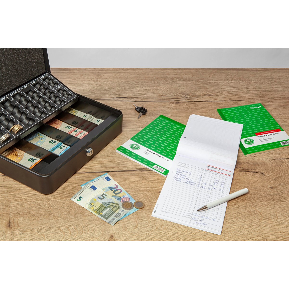 Selbstdurchschreibender Kassenbericht mit Bestandsrechnung im Format DIN A5 mit 40 Originalen + 40 gelben Kopien, inklusive integrierter Schreibunterlage. FSC® zertifiziert, aktuell und rechtssicher. Alle Blätter mit Abheftlochung und ultrafeiner Microperforation für ein schnelles und sauberes Heraustrennen. Das Formular ermöglicht eine exakte Ermittlung des Tagesabschlusses und des Kassenbestandes. Eine Sicherheitsbindung macht das Formularbuch besonders stabil und haltbar.