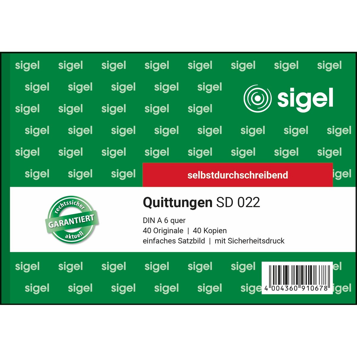 Selbstdurchschreibendes Quittungsformular im Format DIN A6 quer mit MwSt.-Nachweis, aber einfachem Satzbild. Inhalt 40 Originale + 40 gelbe Kopien, inklusive integrierter Schreibunterlage. FSC® zertifiziert, aktuell und rechtssicher, mit fälschungssicherem Dokumentendruck auf jedem Originalblatt. Alle Blätter mit Abheftlochung und ultrafeiner Microperforation für ein leichtes und sauberes Heraustrennen. Eine Sicherheitsbindung macht das Formularbuch besonders stabil und haltbar.