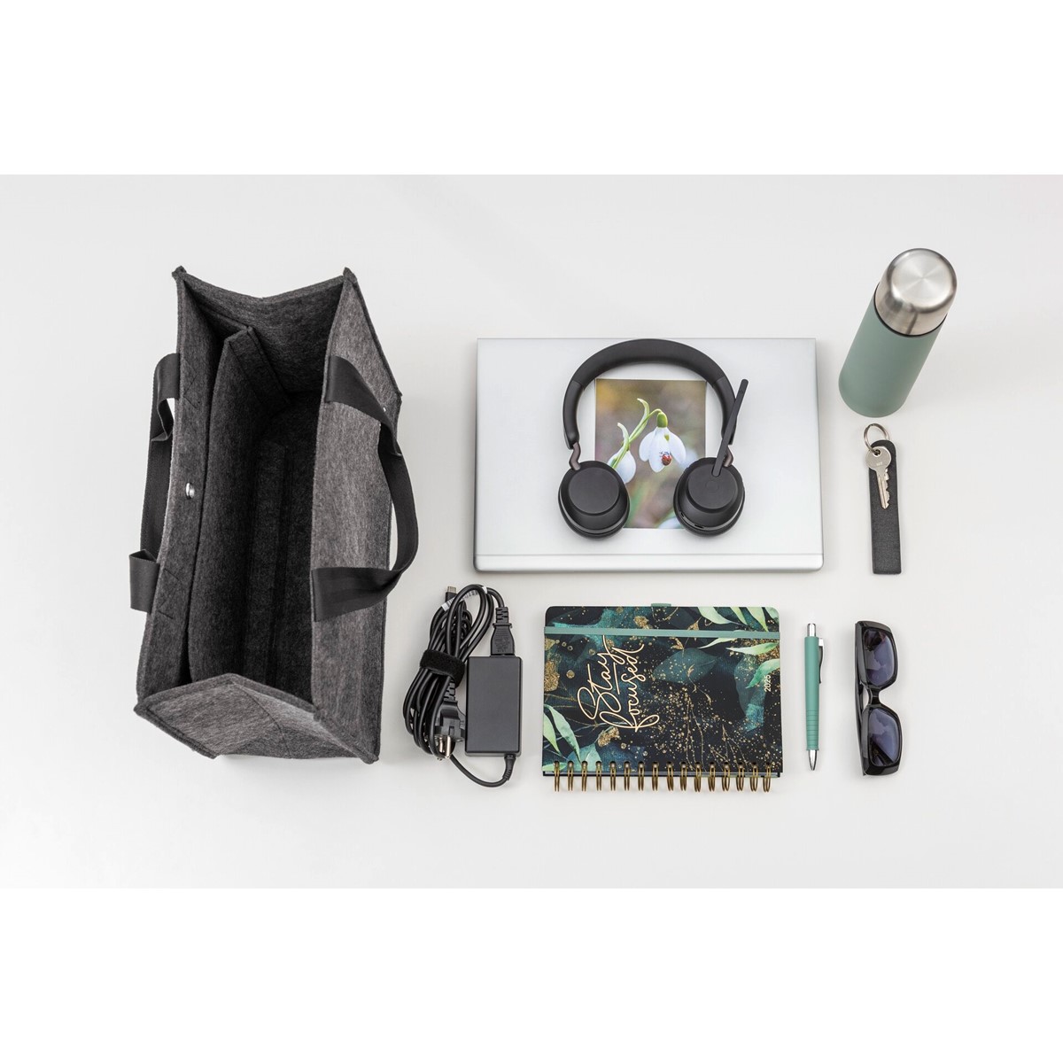 Packen Sie Laptop, Arbeitsunterlagen, Ordner, Smartphone, Ladekabel, Netzteil, Stifte, Tastatur uvm. in den robusten, schmutzabweisenden Desk Sharing Organizer - so haben Sie alle wichtigen Dinge an jedem Arbeitsplatz parat.